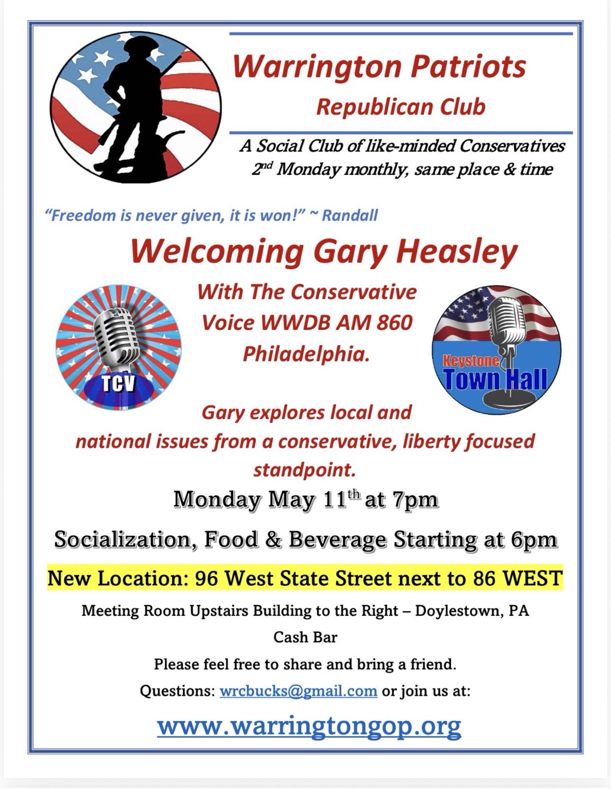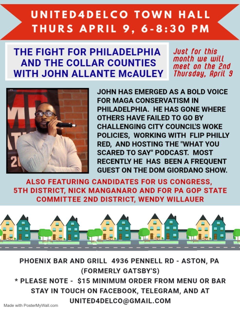 We would love to see you at one of our town halls! We currently have monthly meetings in Chester County, but we are expanding to include other counties in southeastern Pennsylvania. For more information, see the flyers posted below, or email us at: KeystoneTownHall@pm.me.